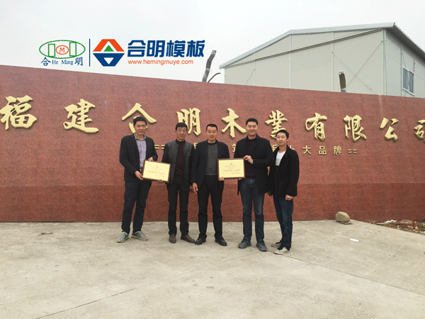 昨日,合明模板寧波奉化9年老經銷商應全明和宋優達至合明考察,并申領了合明模板榮獲2015年度“中國覆膜板十大品牌”榮譽獎牌。