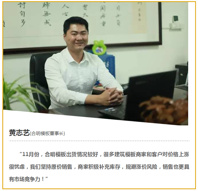 11月,在膠水原材料連續上漲、物流限載、匯率強震等多重不利因素下,建筑模板上漲趨勢明顯,多數建筑模板廠商紛紛調高單價,上漲幅度2-5元/張。