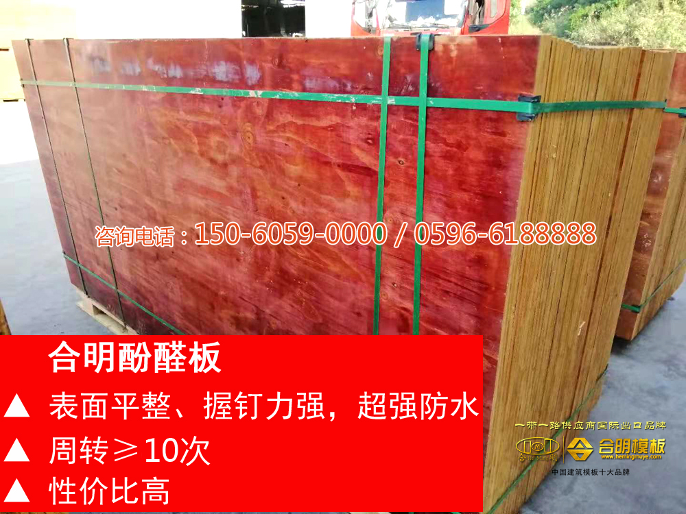 合明苯酚板周轉次數僅次于覆膜板,比普通紅板多,周轉次數達10次以上,價格比覆膜板實惠,是性價比很高的產品,也是合明高銷量的模板之一。
