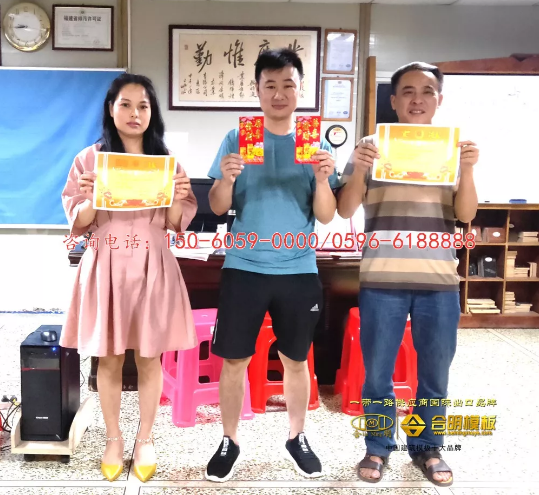 合明旗下設營銷中心、國際事業部、物流園、原木貿易公司、原木旋切廠、曬板場、膠水廠、方木加工廠等建筑模板生產附屬機構,踏實穩步經營,合明模板通過ISO9001質量管理體系,連續多年獲得納稅大戶稱號、漳州市知名品牌、守合同重信用單位等等幾十項認證榮譽。”