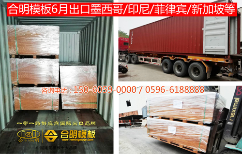 6月份出口建筑模板32貨柜,分別發往墨西哥、印尼、菲律賓、新加坡、越南、阿爾及利亞等國家。其中合明覆膜板以27貨柜艷壓群芳,成為出口NO.1。合明覆膜板素有“海外黑馬”之稱,肯尼亞飛機庫、美國塞班島酒店、迪拜超高層建筑等項目均使用合明覆膜板。