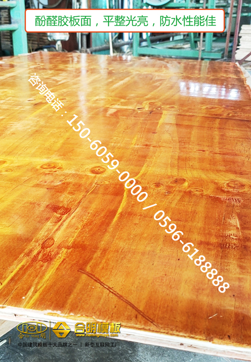 合明覆膜板板面平整耐磨,脫模后墻面整潔美觀,周轉10次以上,深受高層建筑以及酒店、辦公樓、住宅樓等需要裝修的建筑青睞。