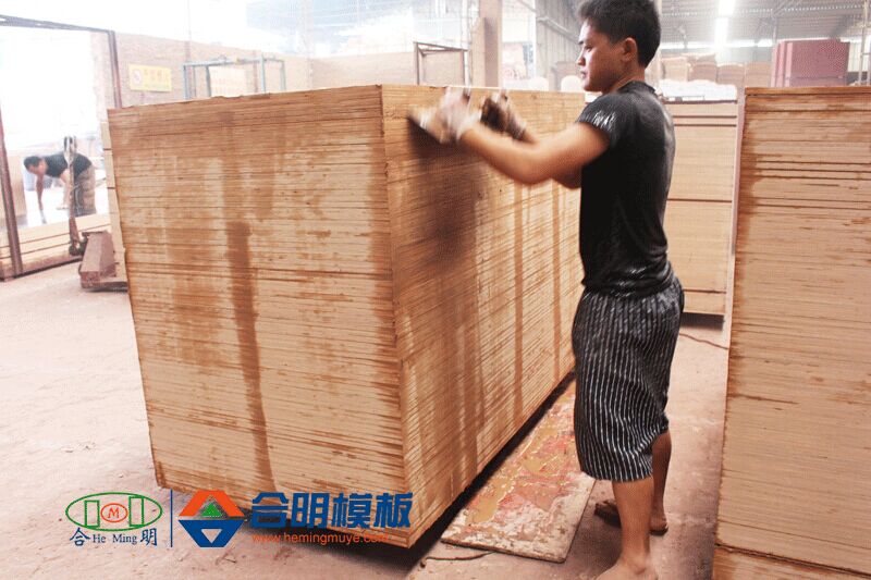8、磨邊,模板邊緣涂防腐材料,噴制合明牌專屬商標,打包入庫。
