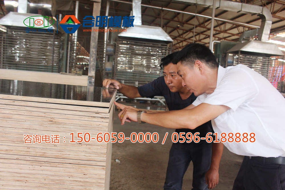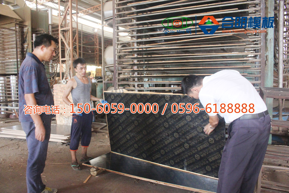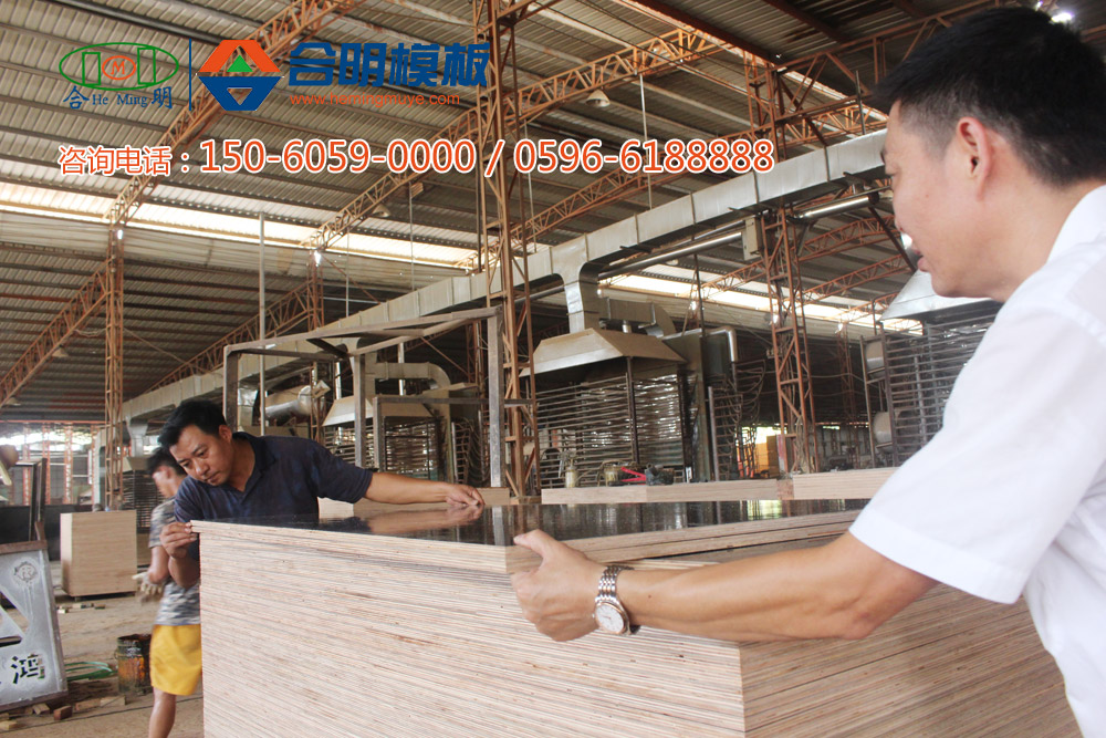 經過翻板工藝后的合明模板,還有經過多重成品檢測,車間主任和管理人員必須保證每一批合明模板等高等寬等長,品種外觀合格。只有在誤差允許范圍內的合明建筑模板才能噴上合明專屬的品牌標志,裝運發貨到世界各地。