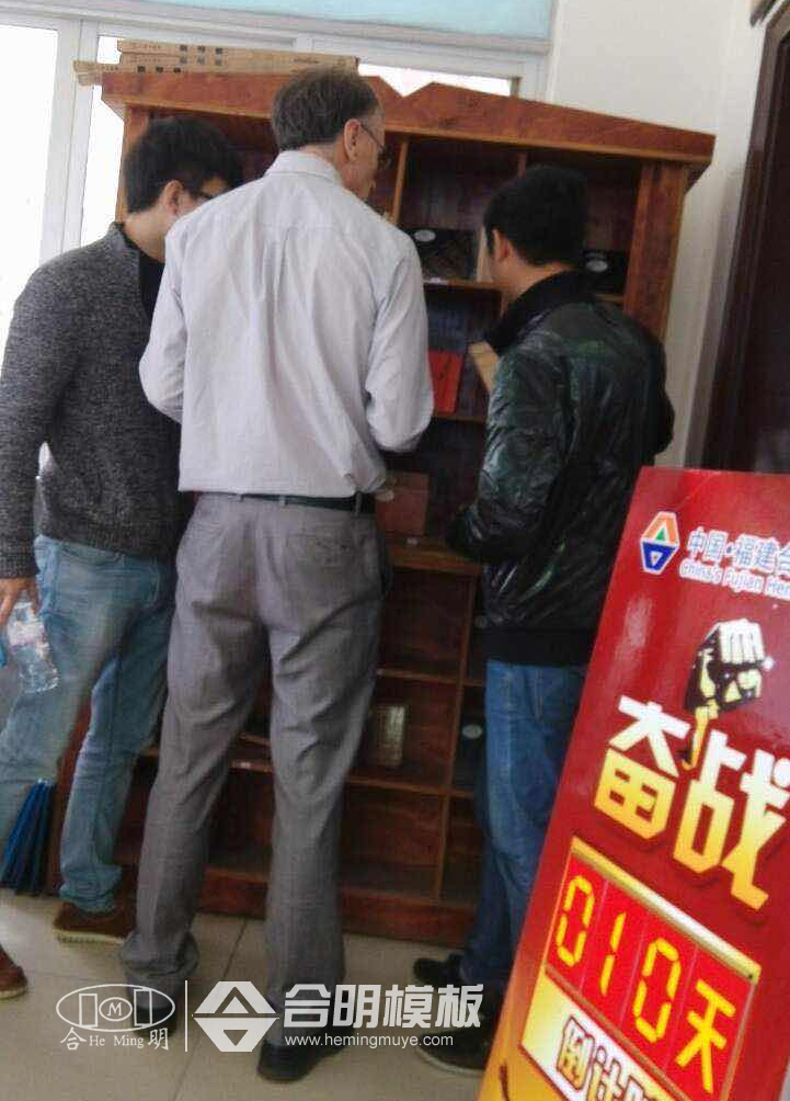 外國(guó)客戶參觀合明建筑模板樣品