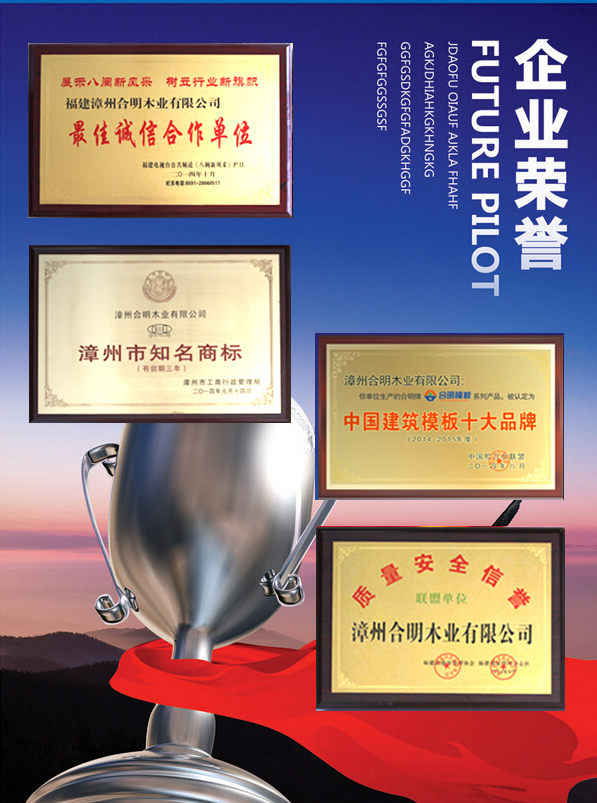 黃志藝說質量一定要切切實實地去執行,現在公司不斷開質量會議討論解決生產中遇到的各種問題。合明模板從原材料選擇到車間的制作,每道模板加工程序都要嚴格按照公司標準執行,時時刻刻堅持品質第一。正因為這樣,合明牌建筑模板被評為“中國建筑模板十大品牌”“漳州市知名商標”“質量信譽安全”等幾十項殊榮。
